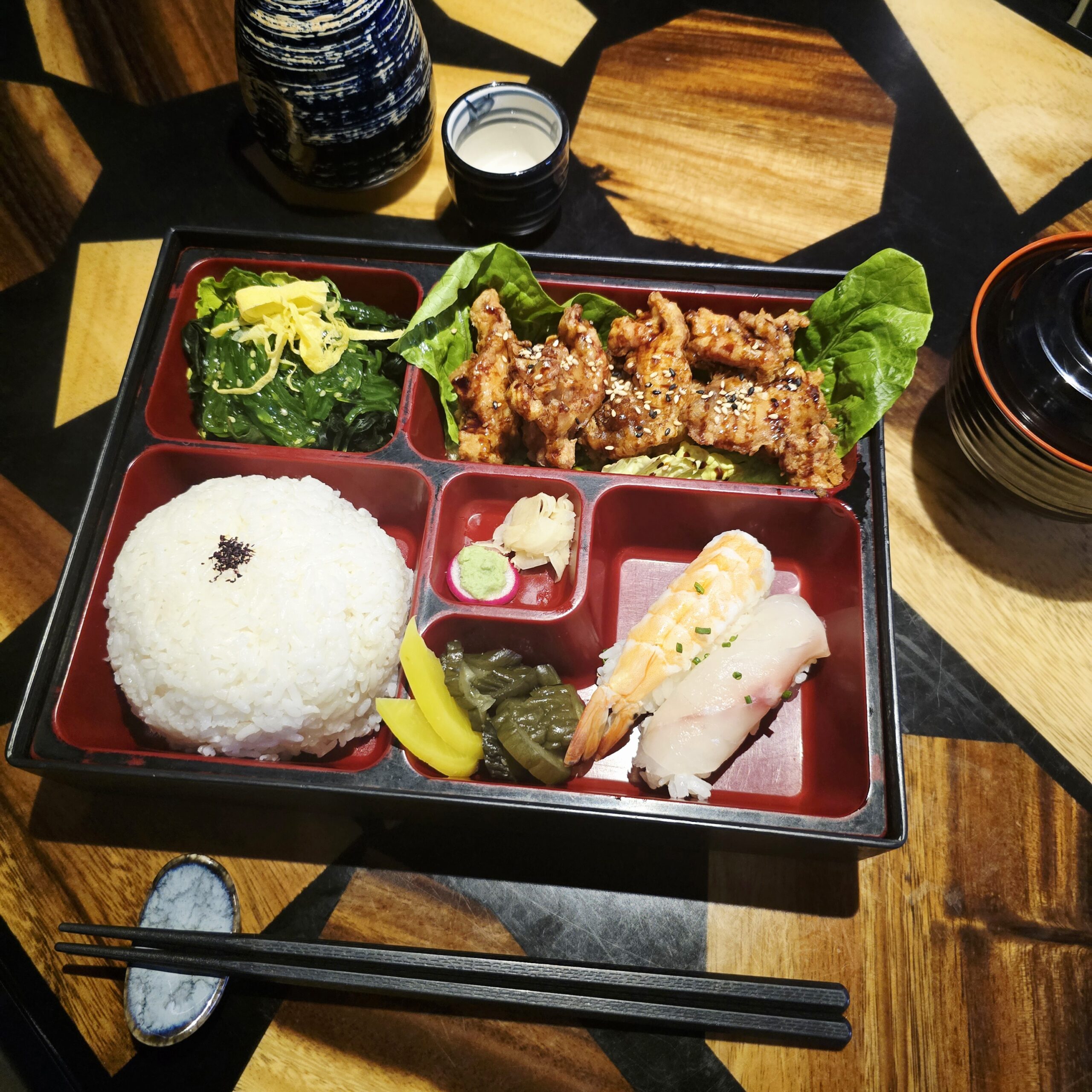 £27.00Emperor size box full of nine Japanese delicacies including sushi and starters (please ask a staff member for the special main course of the day)